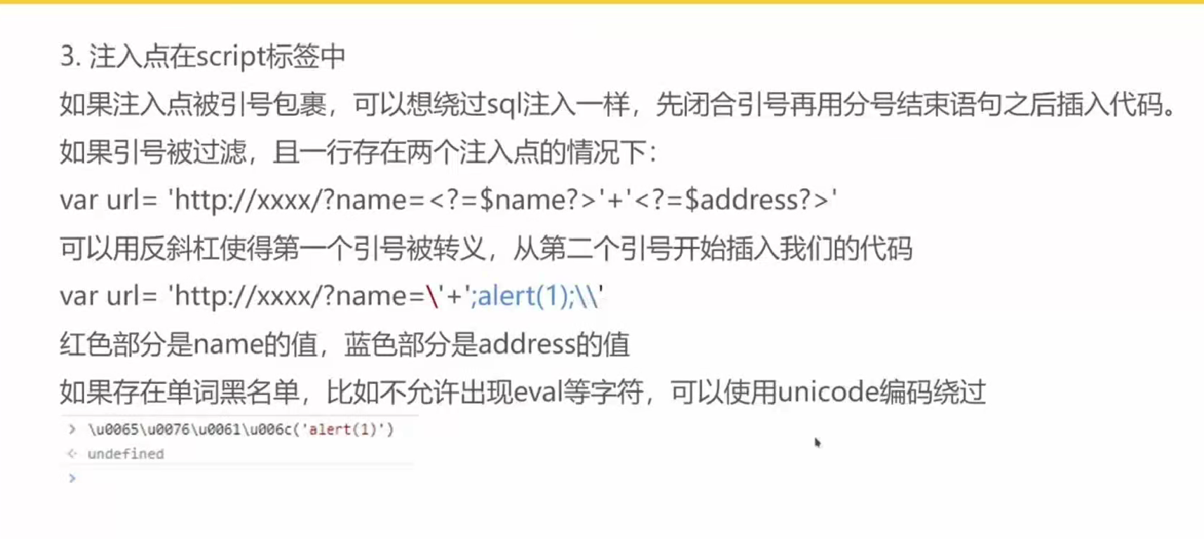 用户输入被单引号包裹where username=’$_GET[‘username’]’,需考虑引号闭合