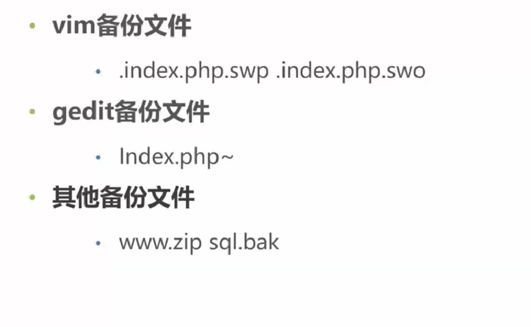 通过泄露的敏感目录,我们可以获取服务器路径、url甚至直接获取网站源码,敏感目录包括: