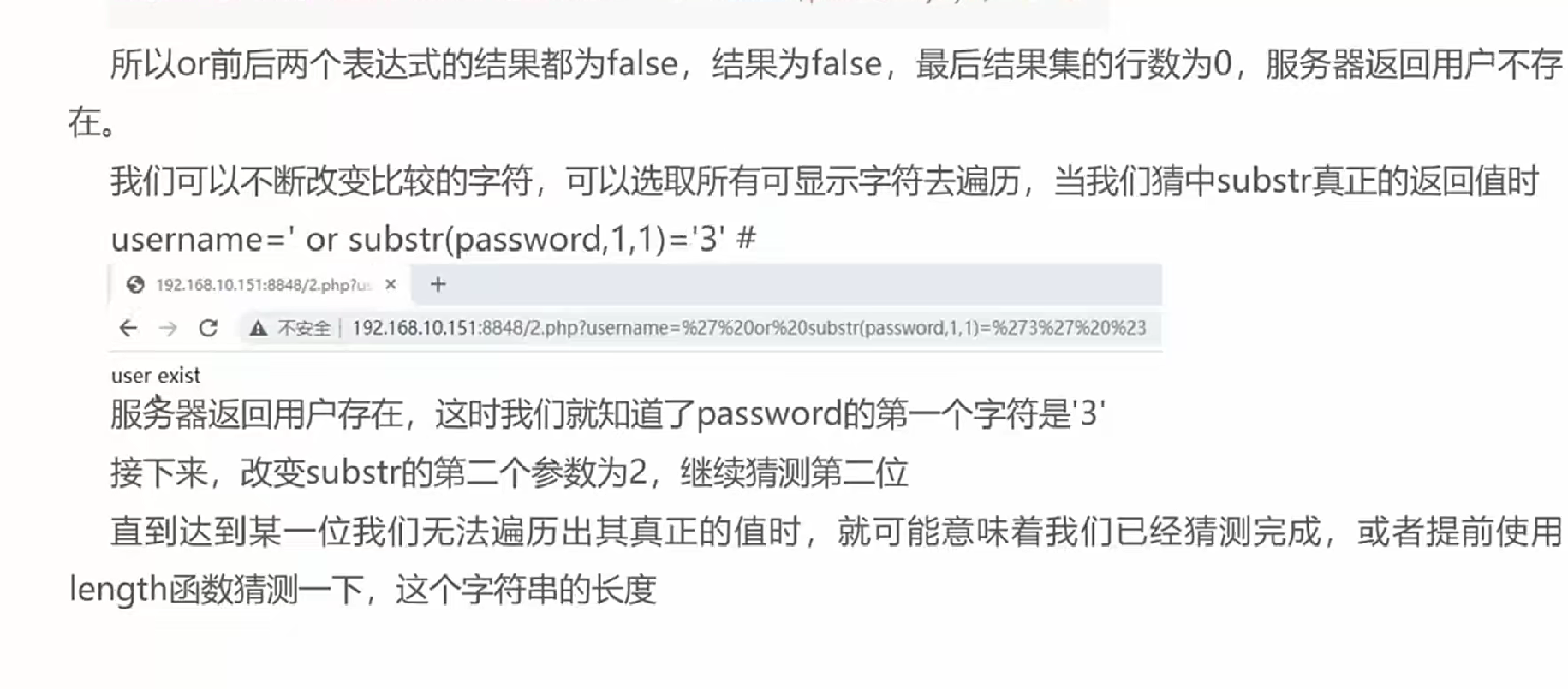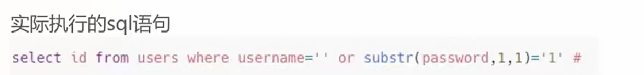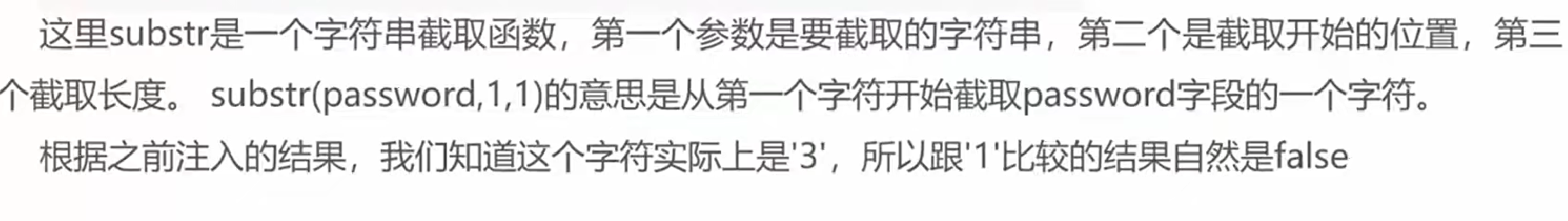 - 使用substr函数逐字符判断:’or substr(password,1,1)=’1’#