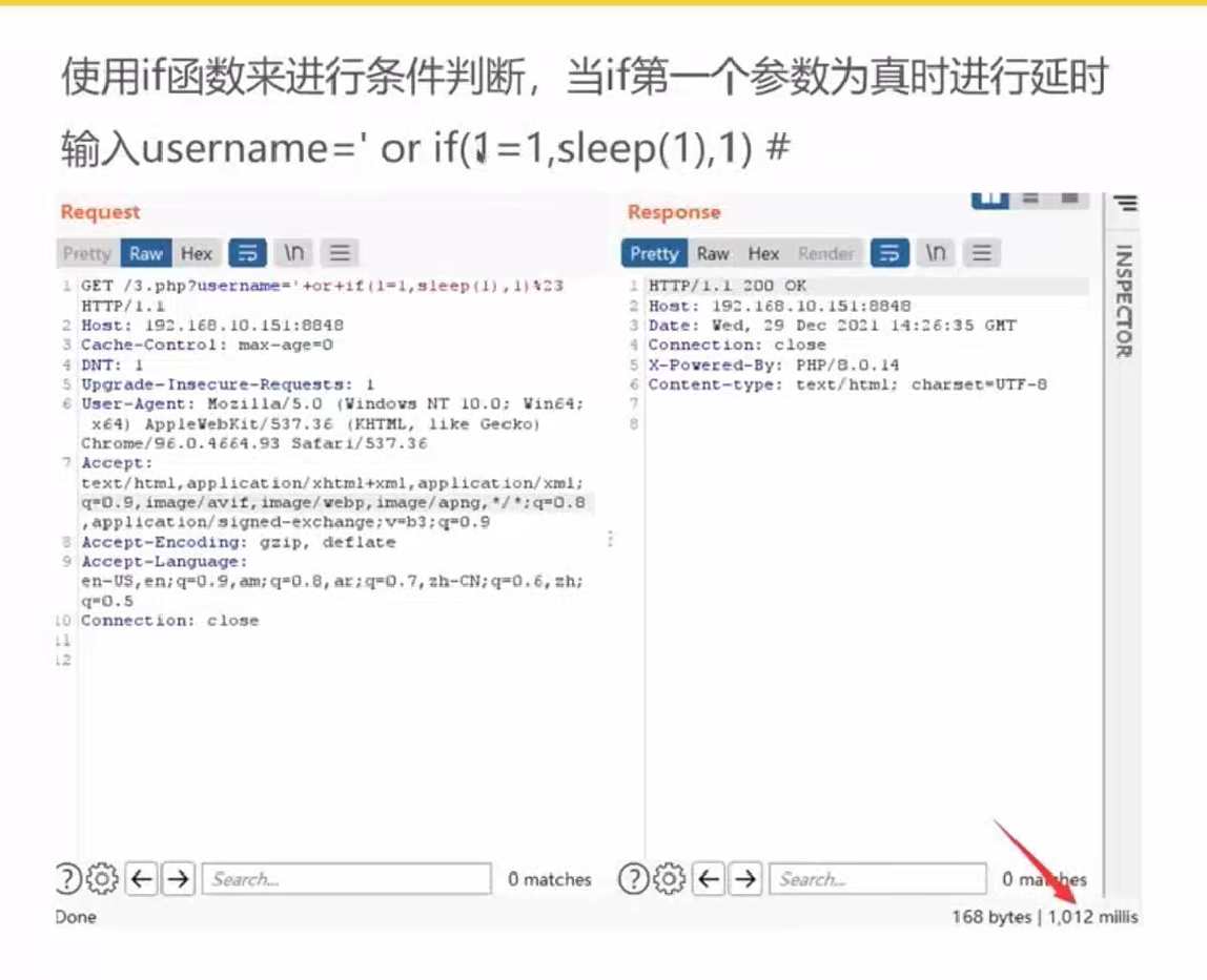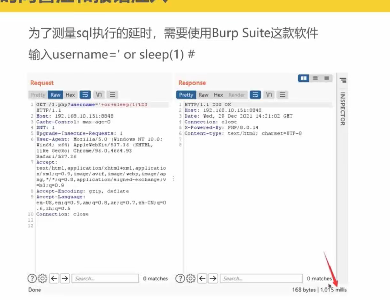 - 测量工具: 使用Burp Suite测量SQL执行延时