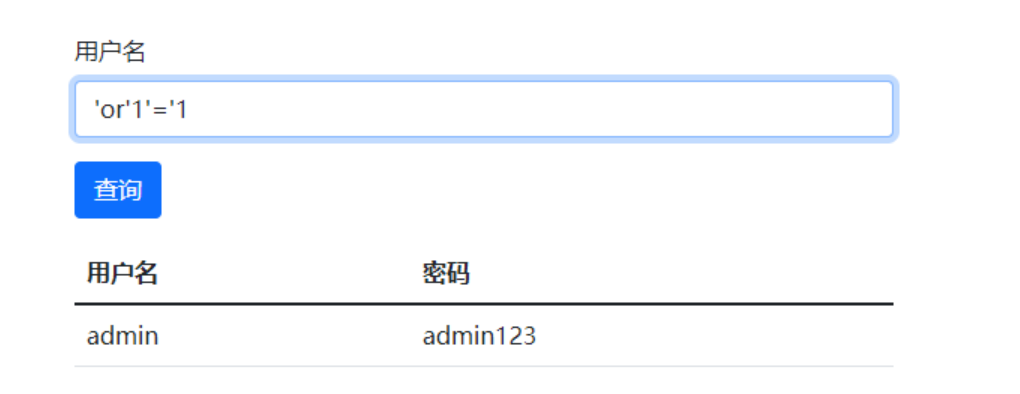 使用‘or’1’=’1可以成功查询出数据,因此存在sql注入。